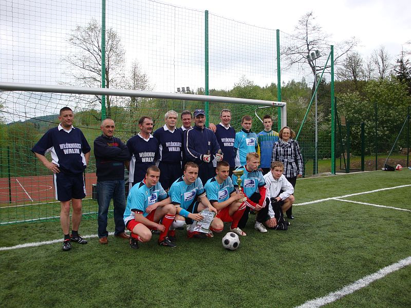 Wspólna fotografia - po zawodach. Reprezentacja OldBoy wystąpiła w histoRycznych strojach Włókniarza Walim.