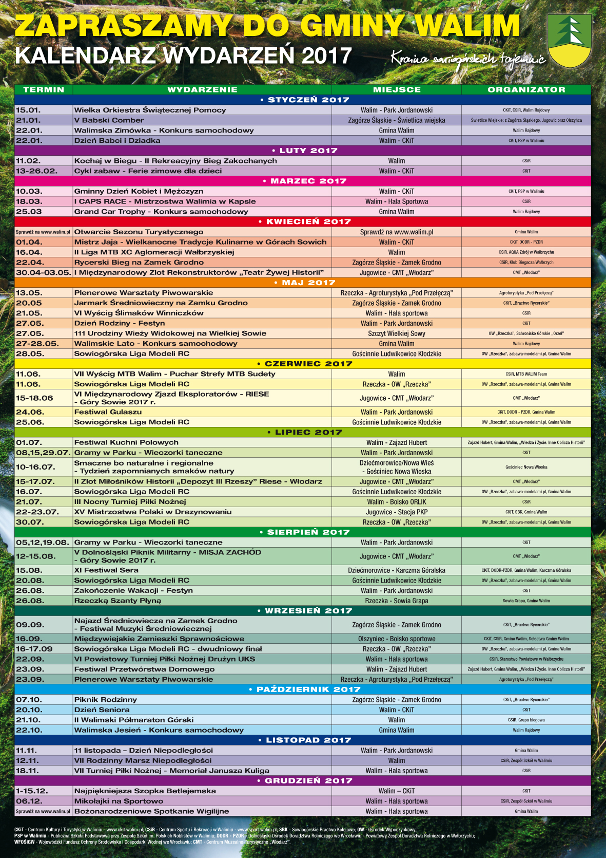 W przypdku realizacji dodatkowych wydarzeń nie ujętych niniejszym harmonogramem będziemy Państwa informować w sposób ogólnie przyjęty (plakaty, ulotki, zaproszenia).